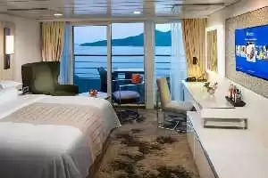 Vantaggi della cabina: evento AzAmazing Evenings® (sulla maggior parte delle crociere), mance incluse, biancheria da letto in cotone con piumino, accappatoi e pantofole, selezione di alcolici standard, birre e vini internazionali, servizio in cabina 24 ore su 24, acqua in bottiglia, bevande analcoliche, caffè e tè speciali, fiori freschi, lavanderia self-service, tote bag, navetta da/per le comunità portuali quando disponibile, prestito ombrelli, servizio di concierge per consigli e prenotazioni, servizio di lustrascarpe, servizio di couverture serale.
