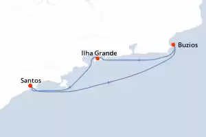 In occasione di una crociera in Sudamerica, potrai visitare città come Santos, riconoscibile con i suoi edifici moderni e i suoi lunghi viali bordati di palme, Punta del Este, famosa per il suo festival di cinema e le magnifiche haciendas dove l'alta borghesia del Brasile e di Argentina passano le loro estate. La città di Montevideo offrirà bellissime spiagge e una grande varietà di spettacoli ed esposizioni.